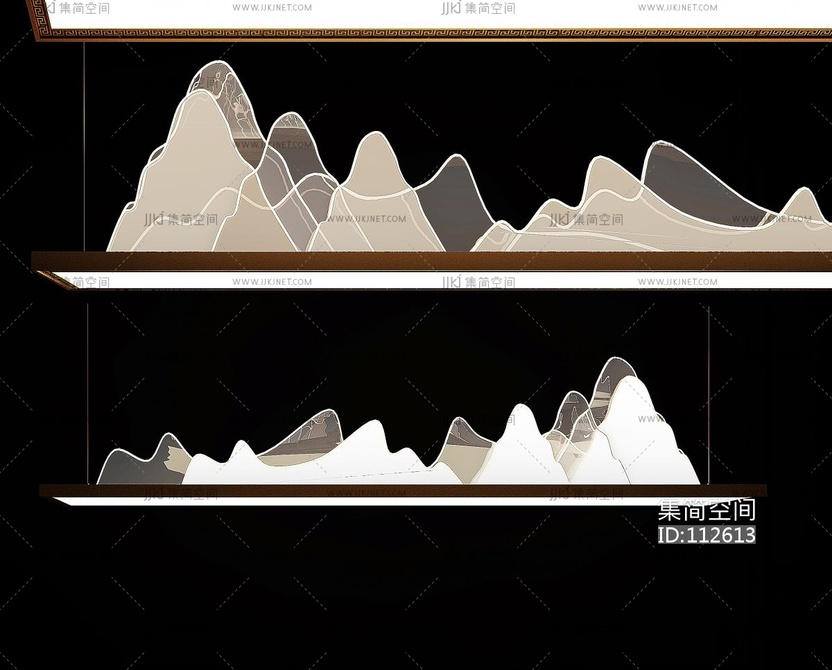 新中式山脉山形状,吊灯长条吊灯 3d模型下载 [模型ID:112613]