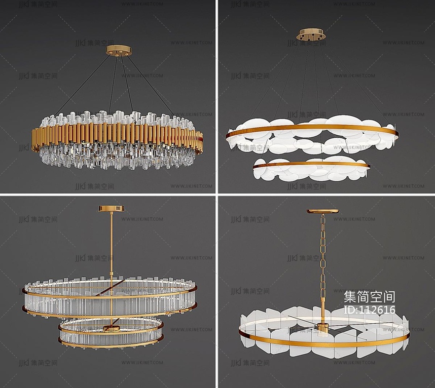 现代轻奢金属水晶吊灯 3d模型下载 [模型ID:112616]