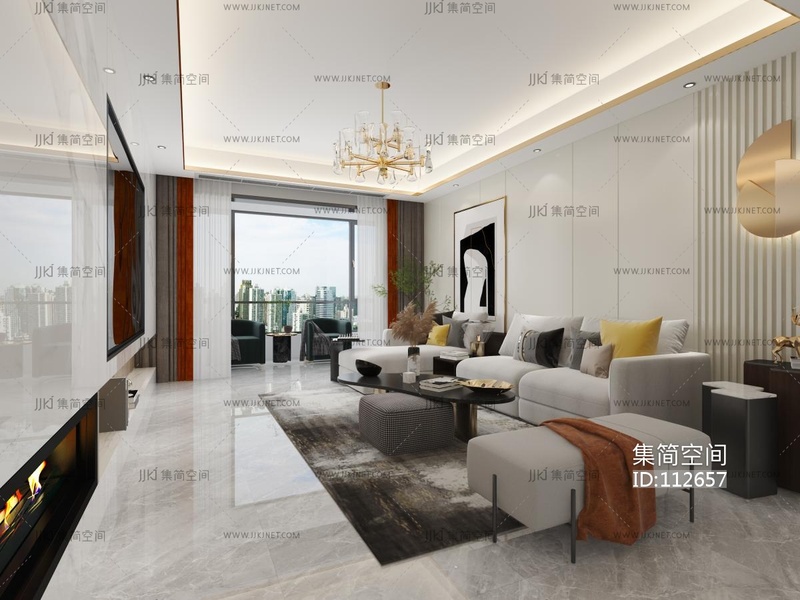 中古风客厅,美式客厅,圆形茶几,装饰画,移动电视,3d模型下载