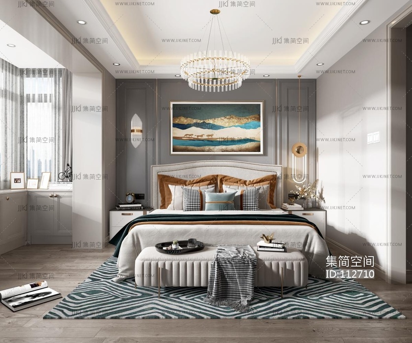 欧式轻奢主卧室, 3d模型下载 [模型ID:112710]