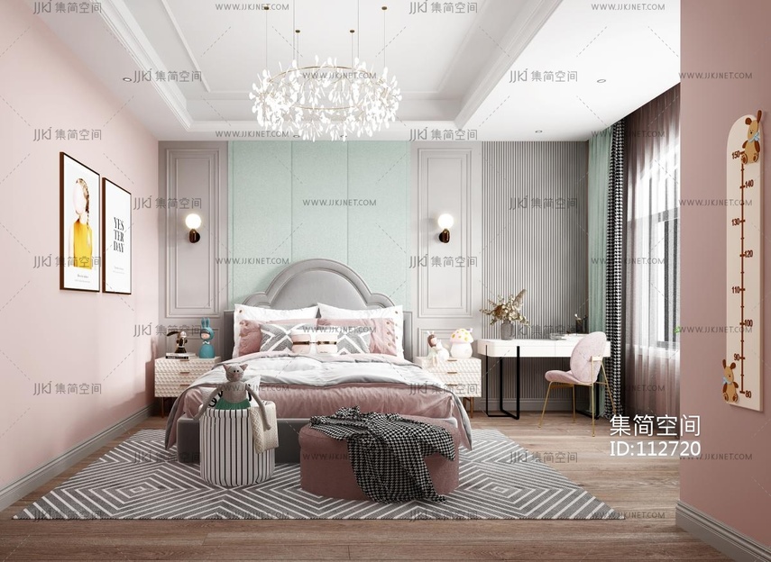 07-现代儿童房,儿童床学习桌-3d模型下载