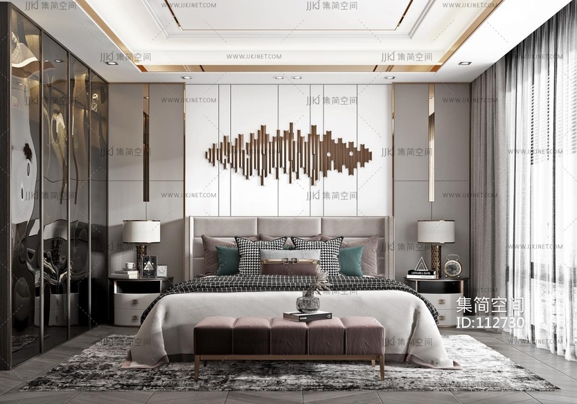 现代轻奢主卧室 3d模型下载 [模型ID:112730]