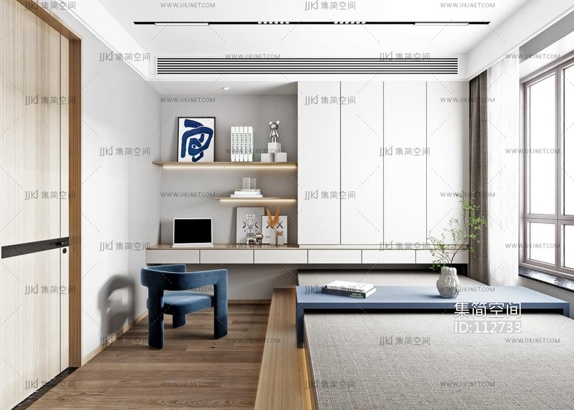 现代榻榻米卧室,单椅, 3d模型下载 [模型ID:112733]