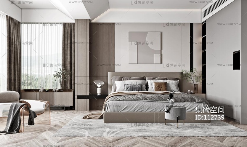 现代卧室,主人房 3d模型下载 [模型ID:112739]