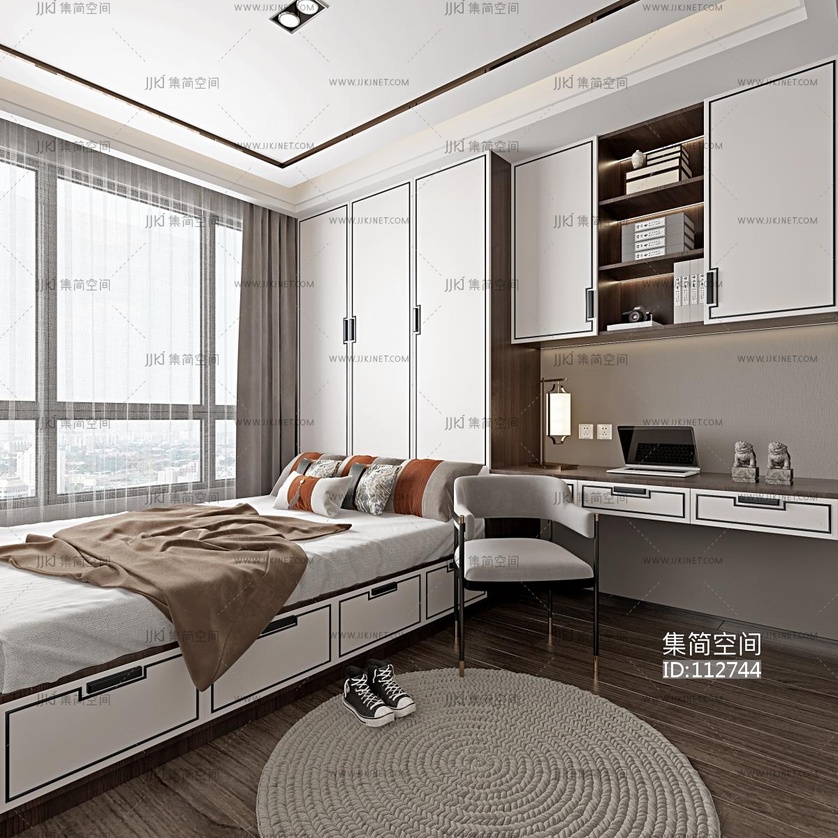 新中式榻榻米卧室 3d模型下载 [模型ID:112744]