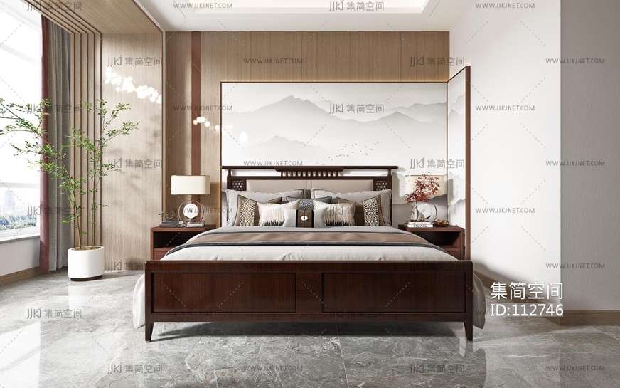 新中式卧室, 3d模型下载 [模型ID:112746]