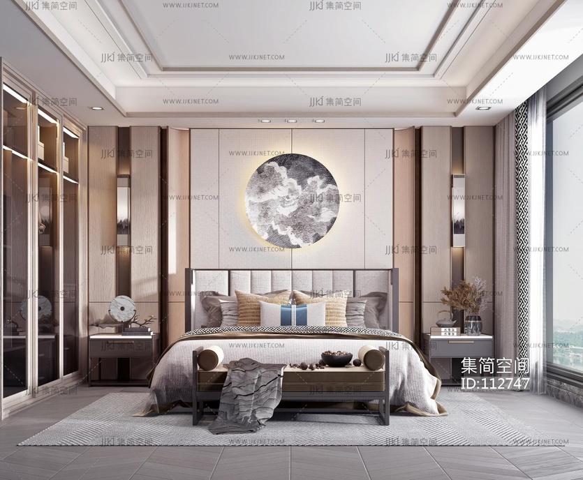 6法式中古家居卧室_主卧_飘窗卧室_高级灰卧室3D模型cr3d模型下载