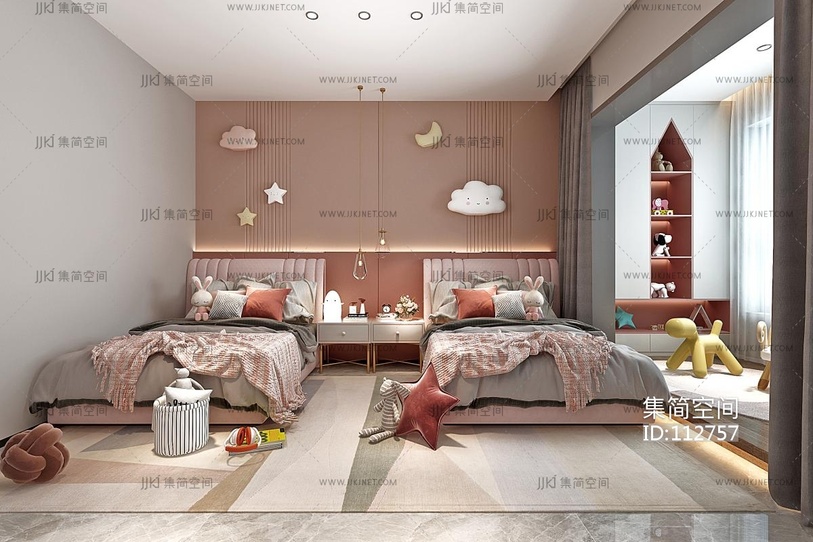 现代儿童房,女孩房 3d模型下载 [模型ID:112757]
