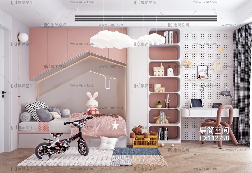 现代儿童房,女孩房(1) 3d模型下载 [模型ID:112758]