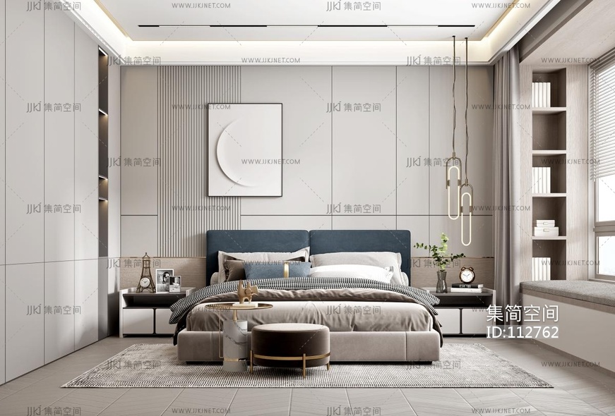 6法式中古家居卧室_主卧_飘窗卧室_高级灰卧室3D模型cr3d模型下载