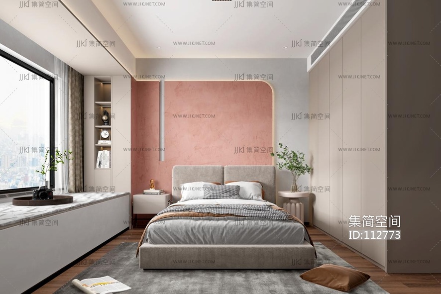 6法式中古家居卧室_主卧_飘窗卧室_高级灰卧室3D模型cr3d模型下载