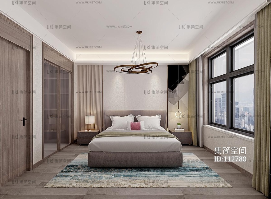 现代 卧室 双人床,床头柜,台灯玻璃衣柜3d模型下载