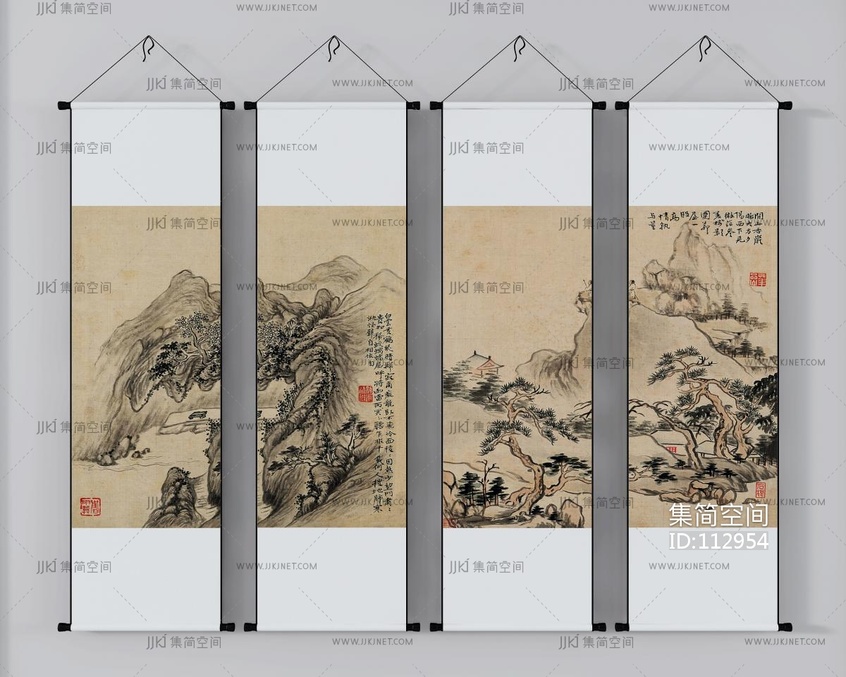 新中式装饰画,挂画 3d模型下载 [模型ID:112954]