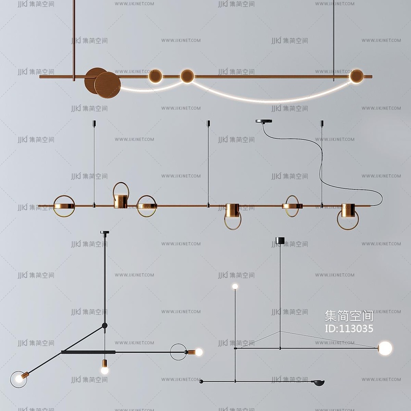 现代金属线性吊灯 3d模型下载 [模型ID:113035]