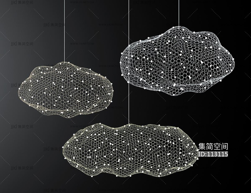 现代金属云朵铁丝网吊灯 3d模型下载 [模型ID:113115]