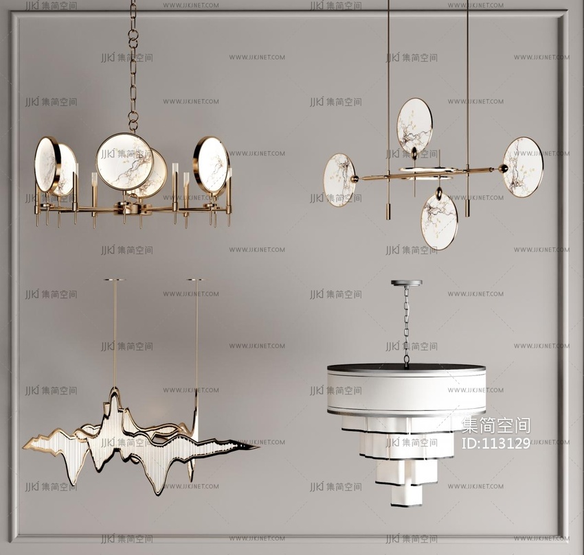 新中式吊灯组合 3d模型下载 [模型ID:113129]