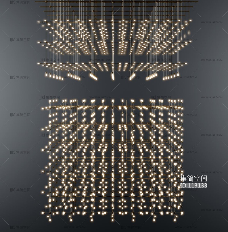 新中式满天星网格钢架大型吊灯 3d模型下载 [模型ID:113133]