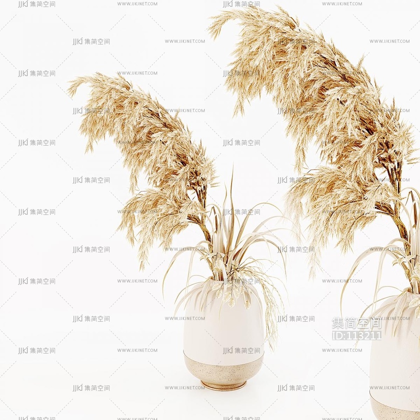 侘寂风花艺,干花,芦苇,花瓶 3d模型下载 [模型ID:113211]