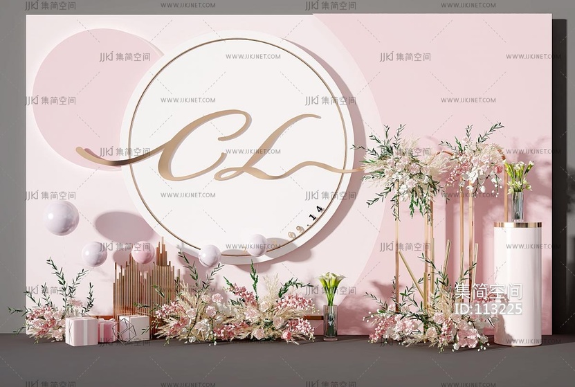 现代美陈,橱窗,节日活动装饰品 玫瑰花 3d模型下载 [模型ID:113225]