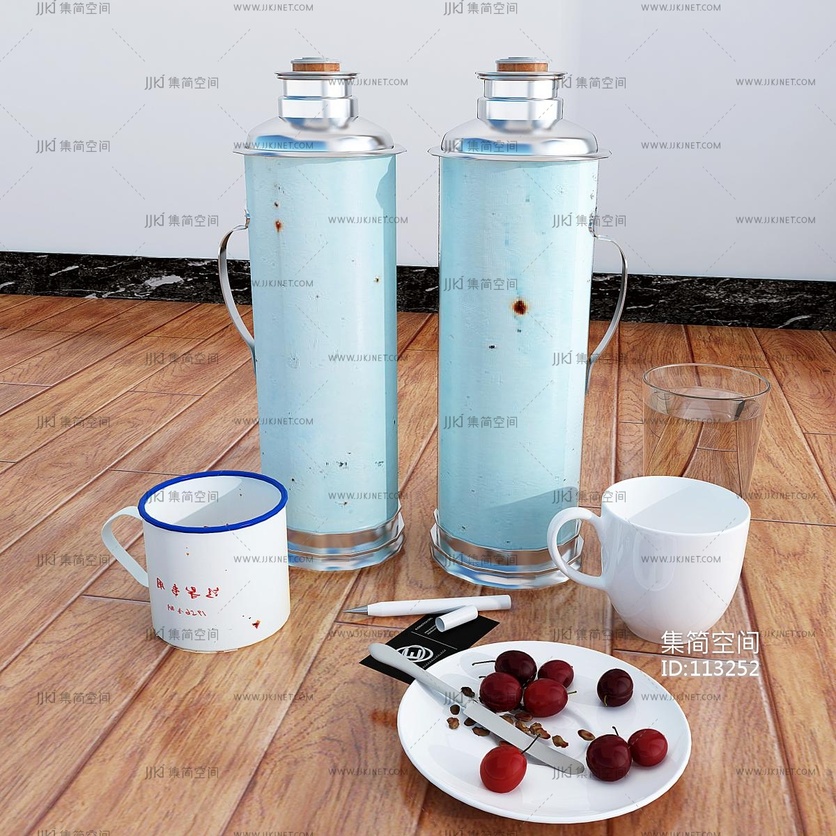 现代保温瓶,玻璃杯,茶杯茶缸子 3d模型下载 [模型ID:113252]