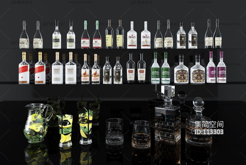 洋酒红酒组合,酒水 ,酒瓶子(1) 3d模型下载 [模型ID:113303]