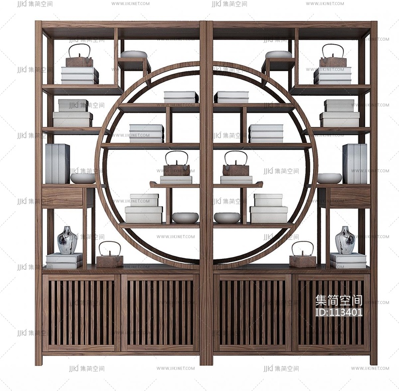 新中式博古架,书架多宝阁,书籍 3d模型下载 [模型ID:113401]