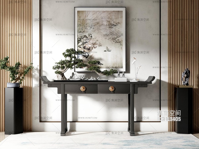 新中式风格端景条案 3d模型下载 [模型ID:113405]