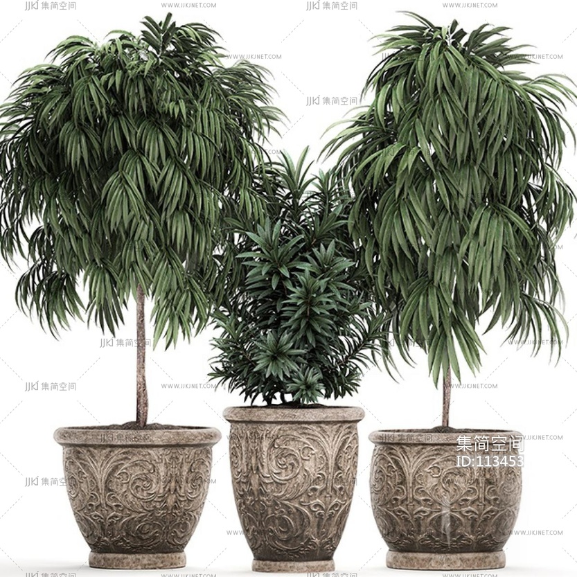 现代盆栽植物组合 3d模型下载 [模型ID:113453]