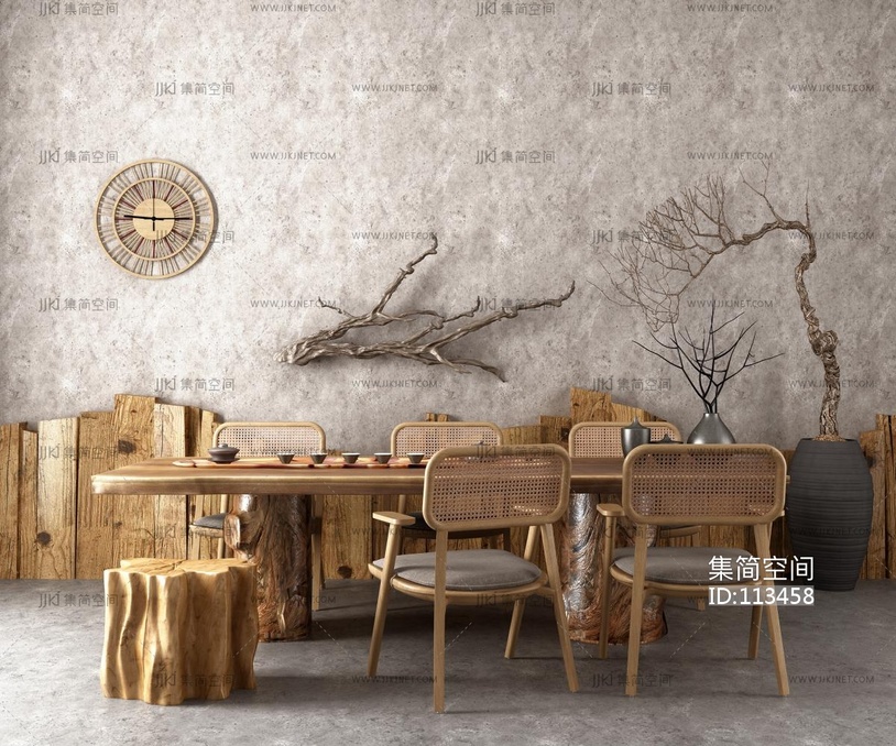 新中式茶桌茶椅组合 3d模型下载 [模型ID:113458]