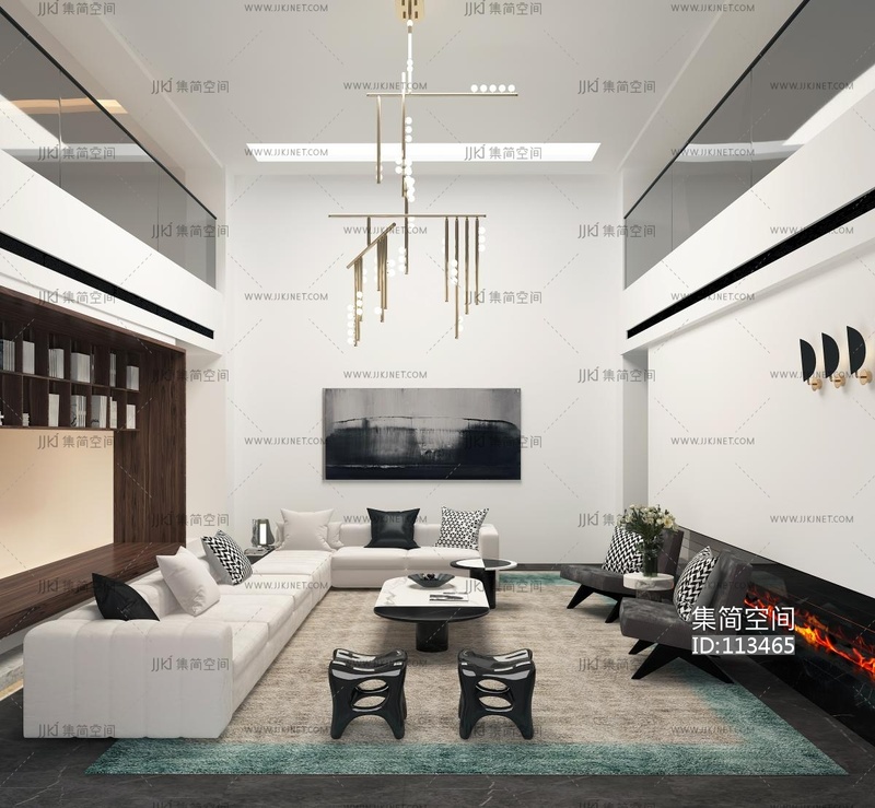 中古风客厅,美式客厅,圆形茶几,装饰画,移动电视,3d模型下载