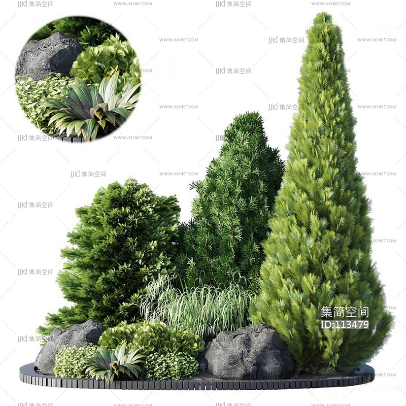 植物堆_灌木_植物组团_花草_花境_植物造景3D模型3d模型下载