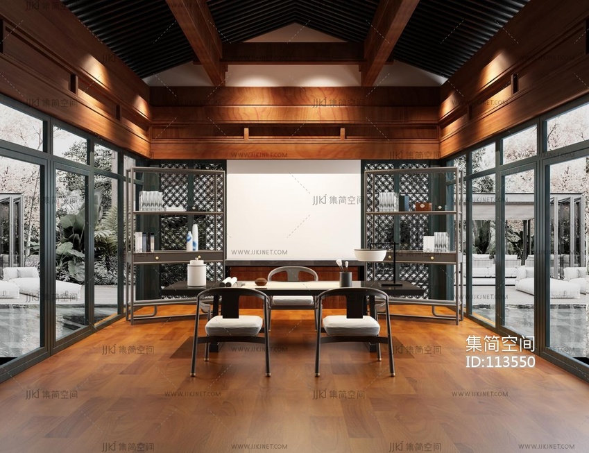 现代书房,书桌椅,书柜亚克力座椅,3d模型下载