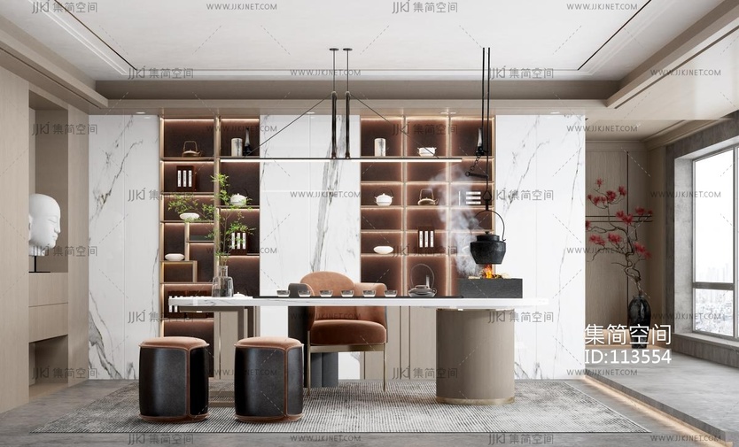 现代书房 书桌椅 壁柜 挂画 吊灯 书 盆栽 摆件3d模型下载