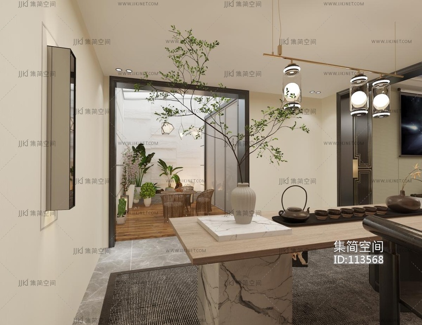 现代书房 书桌椅 壁柜 挂画 吊灯 书 盆栽 摆件3d模型下载