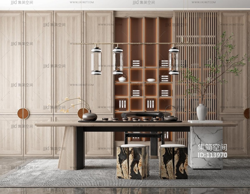 新中式茶室书房 3d模型下载 [模型ID:113970]