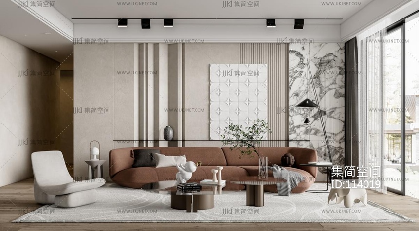 01现代客厅,异形沙发,单人沙发,茶几 su草图模型下载 [模型ID:114019]