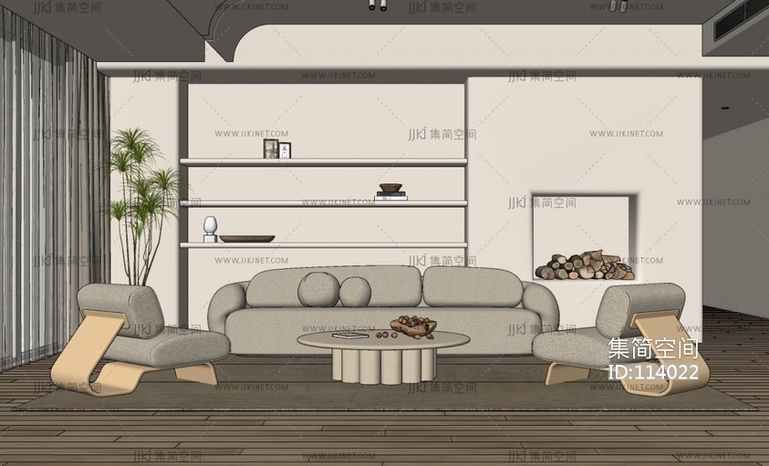 侘寂风客厅,沙发单人沙发 su草图模型下载 [模型ID:114022]