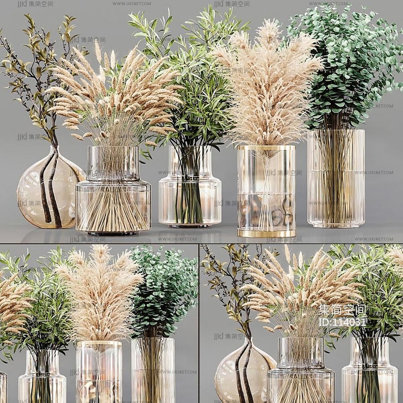 现代花艺__玻璃花瓶_鲜花_插花_装饰摆件3D模型3d模型下载
