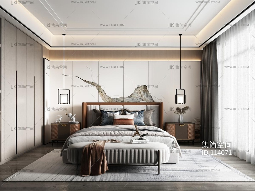 新中式卧室 3d模型下载 [模型ID:114071]