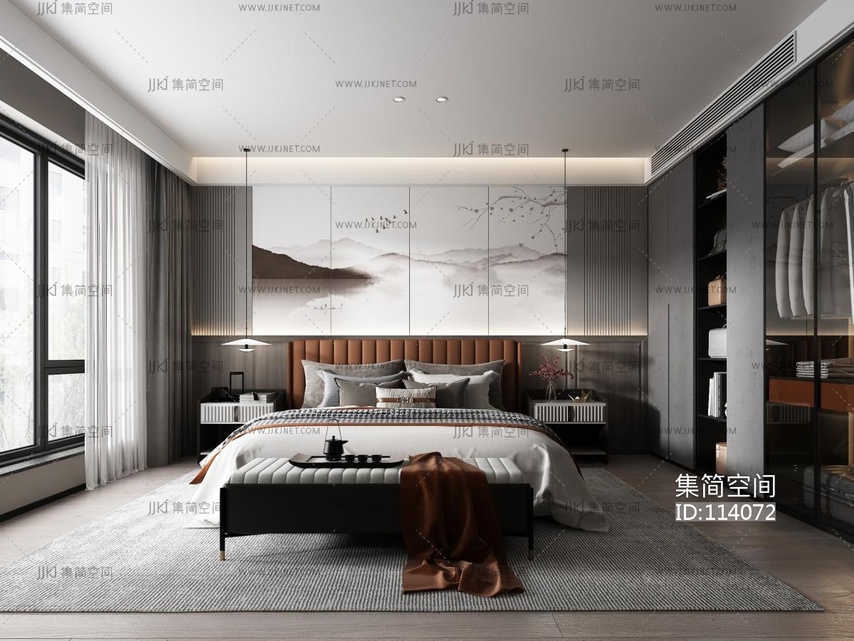 02新中式卧室 3d模型下载 [模型ID:114072]
