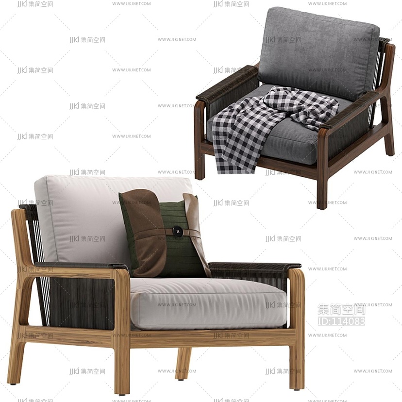 北欧现代布艺单人休闲椅沙发 3d模型下载 [模型ID:114083]