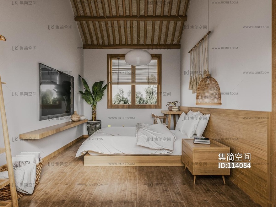 诧寂风自然风民宿酒店客房卧室 3d模型下载 [模型ID:114084]