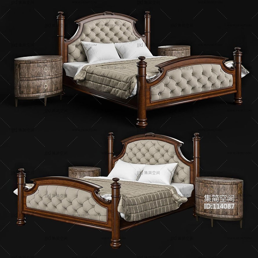 美式欧式古典皮革木质双人床 3d模型下载 [模型ID:114087]
