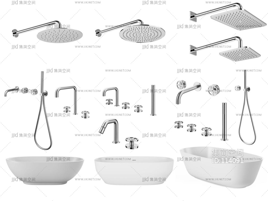 现代浴缸 淋浴 花洒 3d模型下载 [模型ID:114091]