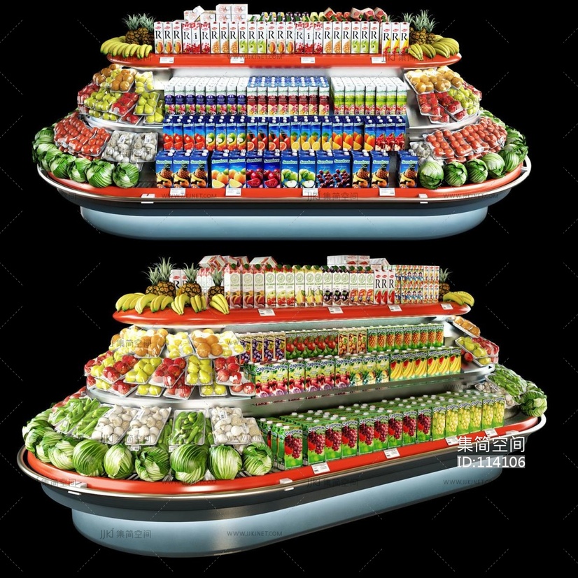 超市水果展示货架_糖果陈列架展柜超市货架水果摊位菠萝礼盒3D模型(2021)3d模型下载