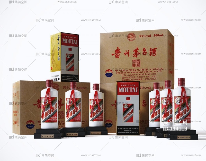 现代茅台 白酒 酒水酒瓶子包装盒_ 3d模型下载 [模型ID:114119]