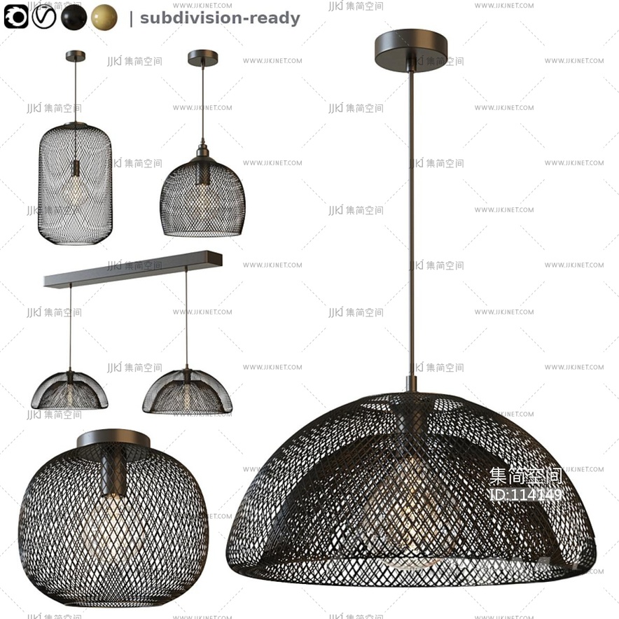 工业风网格吊灯Pendant Lights 铁艺吊灯 3d模型下载 [模型ID:114149]