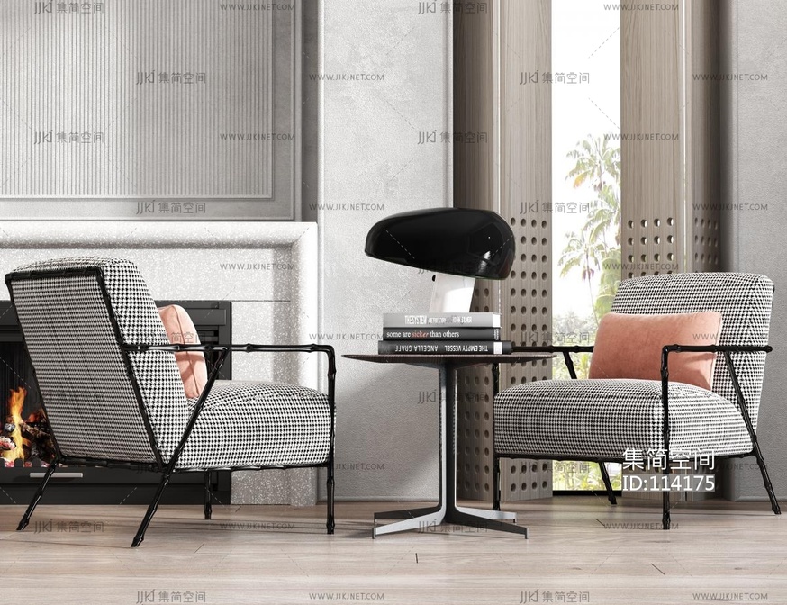 现代轻奢布艺休闲椅 小圆桌组合 3d模型下载 [模型ID:114175]