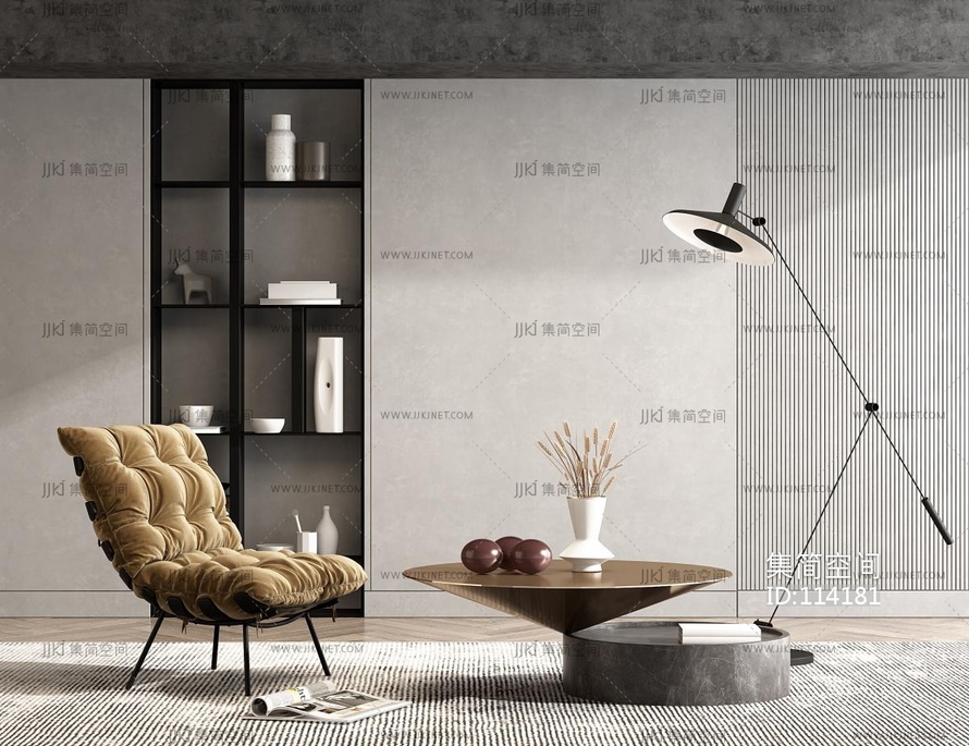 现代休闲椅_边几茶几 3d模型下载 [模型ID:114181]