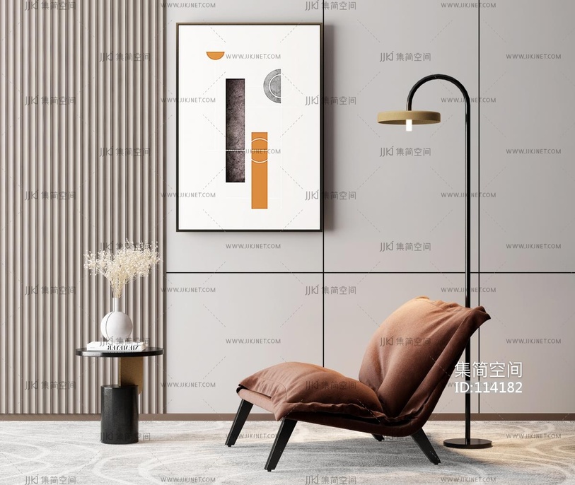 现代休闲椅 圆形边几 3d模型下载 [模型ID:114182]